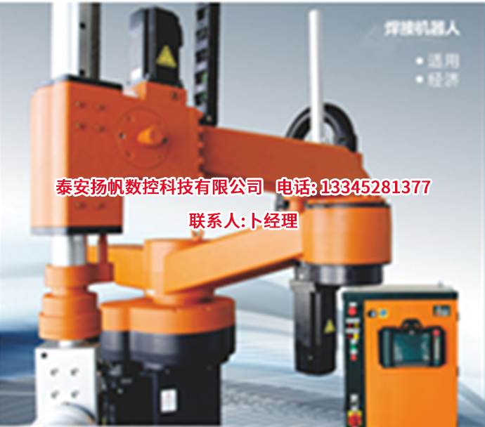 2、經(jīng)濟型焊接機器人介紹及工作原理:經(jīng)濟型焊接機器人是一種水平式多關(guān)節(jié)工業(yè)機器人。由一個五軸聯(lián)動機械臂(YFR-S1)和控制柜(YFRC1)組成;本型號機器人主要用于金屬弧焊領(lǐng)域。在焊接軌跡與焊機通訊方面有成熟的技術(shù)與累計;全中文的系統(tǒng)界面便于操作人員學(xué)習(xí)與使用。經(jīng)濟型焊接機器人控制系統(tǒng)是采用編程語言開發(fā)的機器人控制軟件,此操作系統(tǒng)采用全中文操作,具有操作便捷、功能齊全、性能穩(wěn)定的人機接口和控制特點,使機器人在現(xiàn)場可實現(xiàn)緊密、快速、智能化、柔性化的生產(chǎn)需求。