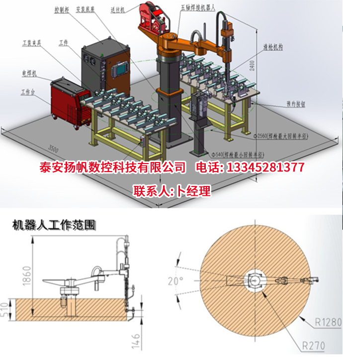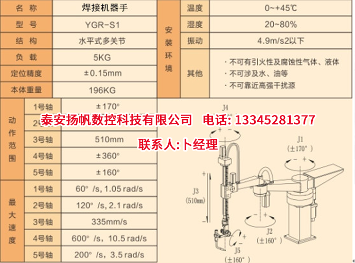 定位精度:±0.15mm 焊接工作半徑:1280mm 焊接工作高度:500mm 外形尺寸(長×寬×高):2000mm×500mm×1600mm 重量:196kg