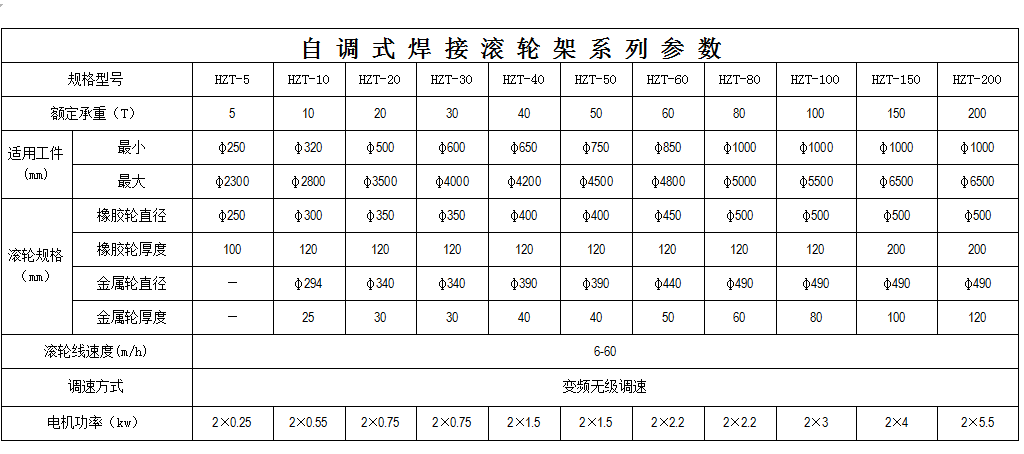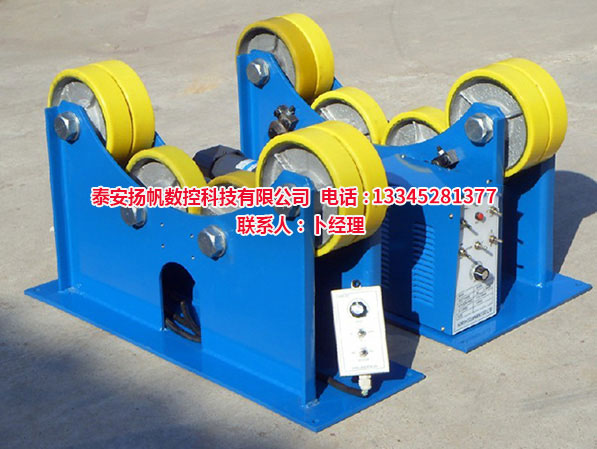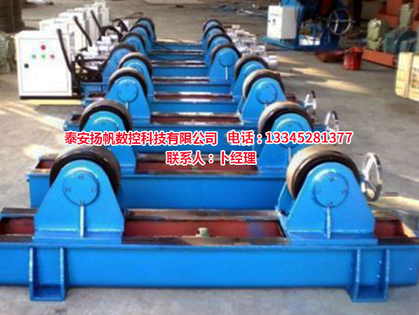 焊接滾輪架,是利用主動(dòng)滾輪與焊件之間的摩擦力帶動(dòng)工件旋轉(zhuǎn)的變位設(shè)備。滾輪架可根據(jù)工件直徑大小自動(dòng)調(diào)節(jié)輪組的擺角,并能自動(dòng)調(diào)心。滾輪架主要用于管道、容器、鍋爐、油罐等圓筒形工件的裝配或焊接,滾輪架當(dāng)與焊接山東操作機(jī)、焊接電源配套時(shí),可以實(shí)現(xiàn)工件的內(nèi)外縱縫和內(nèi)外環(huán)縫焊接。滾輪架充分吸取了國(guó)內(nèi)外同類(lèi)產(chǎn)品的優(yōu)點(diǎn),具有工藝、質(zhì)量可靠、操作簡(jiǎn)單、傳動(dòng)噪聲低、工件回轉(zhuǎn)平穩(wěn)等優(yōu)點(diǎn)。滾輪架是實(shí)現(xiàn)壓力容器及筒狀工件焊接自動(dòng)化、半自動(dòng)化的必備設(shè)備。自調(diào)式滾輪架滾輪驅(qū)動(dòng)采用變頻調(diào)速電動(dòng)機(jī),可按焊接規(guī)范進(jìn)行無(wú)極調(diào)速,具有焊接速度調(diào)速范圍寬、轉(zhuǎn)動(dòng)平滑性好、低速特性硬等特點(diǎn)。當(dāng)對(duì)主、從滾輪架的高度作適當(dāng)?shù)恼{(diào)整后,也可進(jìn)行錐體、分段不等徑回轉(zhuǎn)體的裝配與焊接。對(duì)于一些非圓長(zhǎng)形焊件,若將其卡在特制的環(huán)形卡箍?jī)?nèi),也可在焊接滾輪架上進(jìn)行裝焊作業(yè)。特別是自調(diào)式、可調(diào)式焊接滾輪架系列