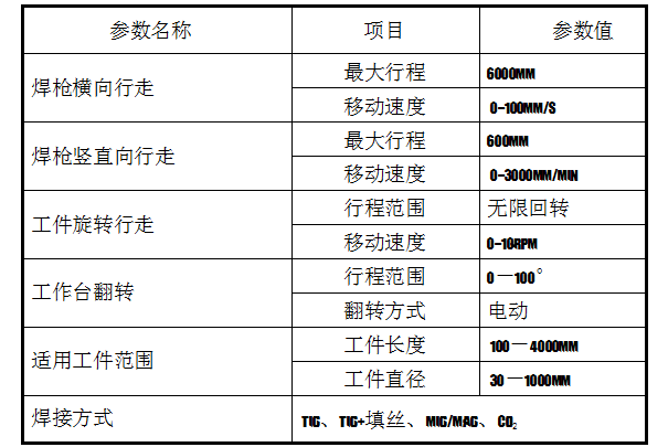 工件裝卡采用軸管中心孔三爪氣動(dòng)卡盤(pán)定位,尾座氣動(dòng)頂緊方式;工件回轉(zhuǎn)采用步進(jìn)電機(jī)調(diào)速、恒轉(zhuǎn)矩輸出,速度平穩(wěn);機(jī)頭橫向和縱向電機(jī)采用伺服電機(jī)驅(qū)動(dòng),使用螺旋焊接范圍寬,速度平穩(wěn);尾座沿縱向可調(diào),可適應(yīng)多品種焊接。焊接實(shí)施等功能均由控制盒的按鈕實(shí)現(xiàn),操作簡(jiǎn)單,便捷,操作采用人機(jī)界面可進(jìn)行參數(shù)的更改,數(shù)控焊接專機(jī)參數(shù)的修改可通過(guò)觸摸式按鍵,方便及時(shí)的輸入;該焊接專機(jī)以松下可編程序控制器為核心組成自動(dòng)焊接控制系統(tǒng),自動(dòng)化程度高,提高工作效率,減少焊接變形。